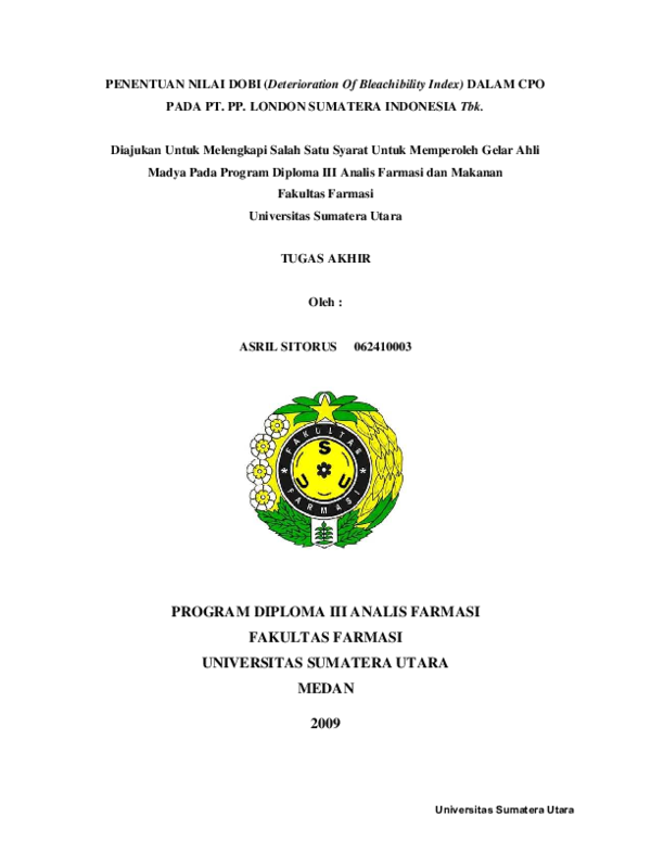 Pdf Penentuan Nilai Dobi Deterioration Of Bleachibility Index Dalam Cpo Pada Pt Pp London Sumatera Indonesia Tbk Helena Sihotang Academia Edu